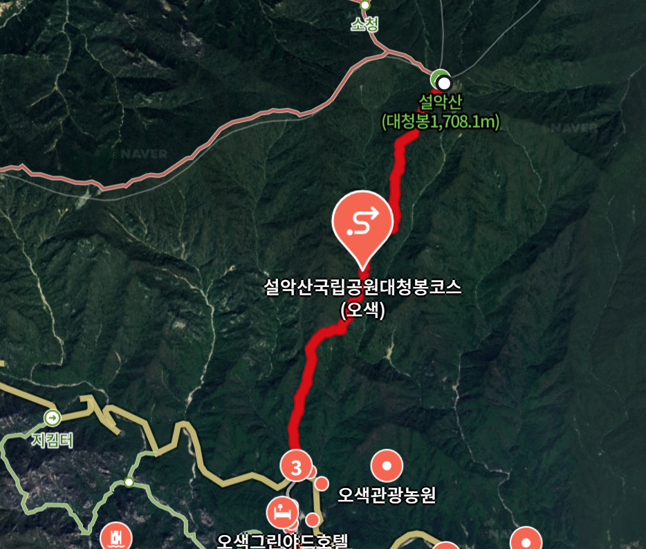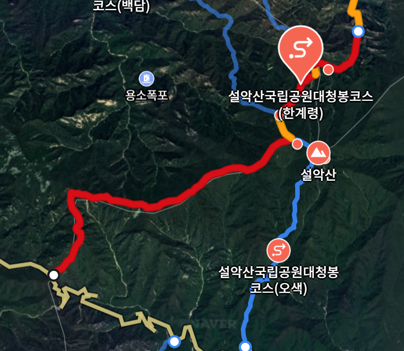 - 코스: 오색탐방지원센터 → 설악폭포 → 대청봉