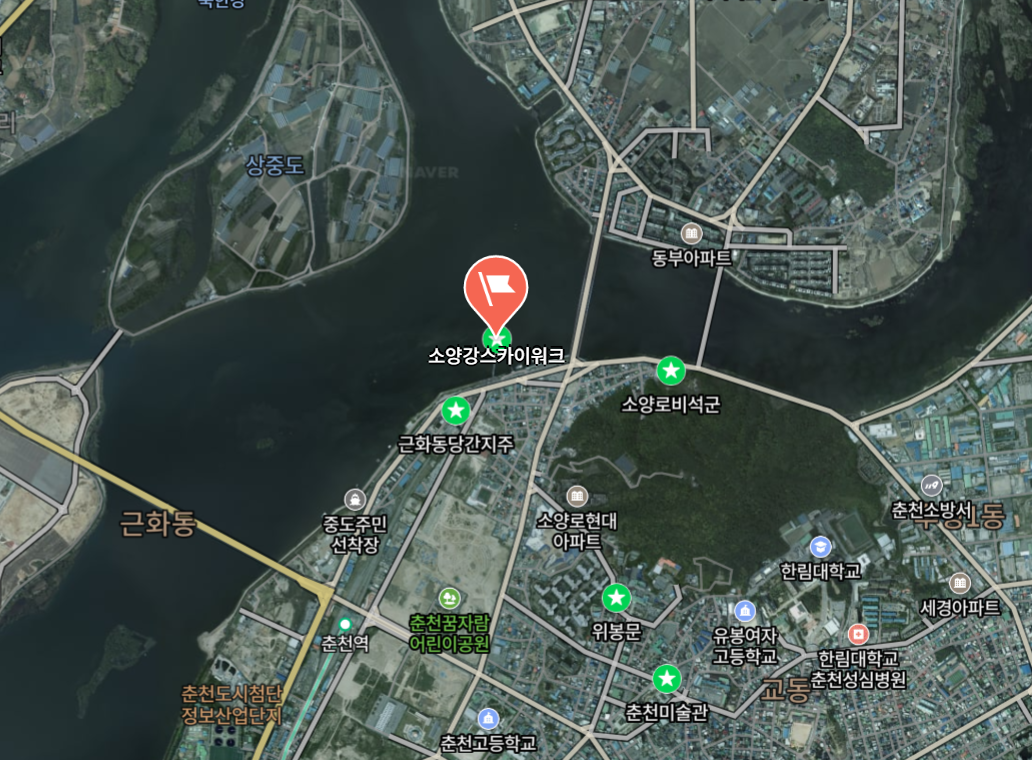 - 부산 출발: 중앙고속도로 이용 → 춘천IC 진출 → 소양강 스카이워크 방면 (약 4시간 소요)