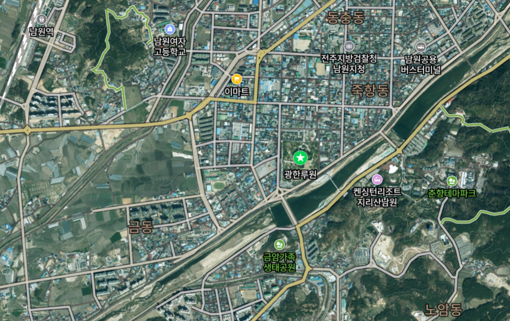 - 네비게이션: "광한루원" 검색