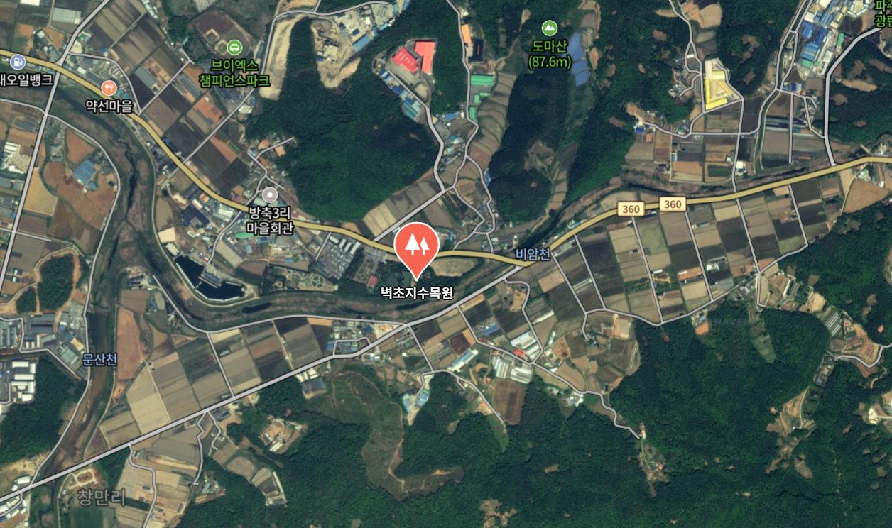 - 네비게이션 검색: "벽초지수목원" 입력